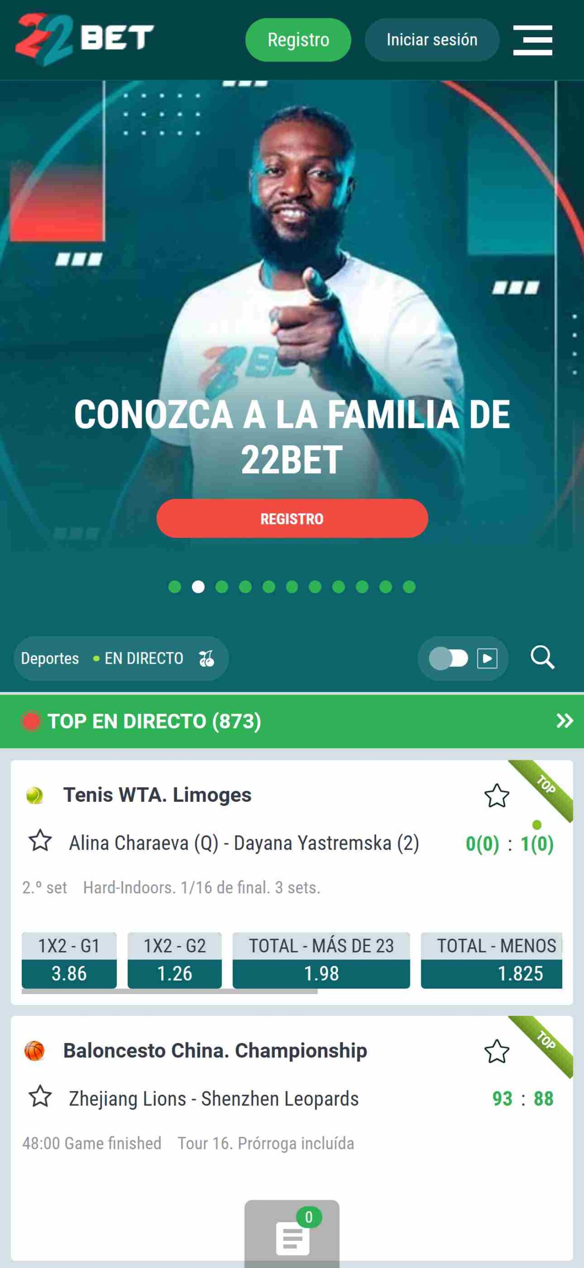 Si quieres apostar en vivo con 22Bet, dirígete hasta “DIRECTO” y encuentra el partido de tu preferencia para realizar apuestas en directo, es decir, mientras la acción se encuentra en marcha.