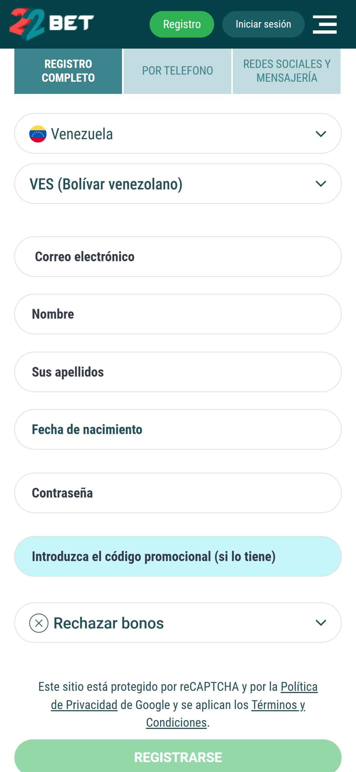 | Correo Electrónico | support-es@22bet.com; security@22bet.com |