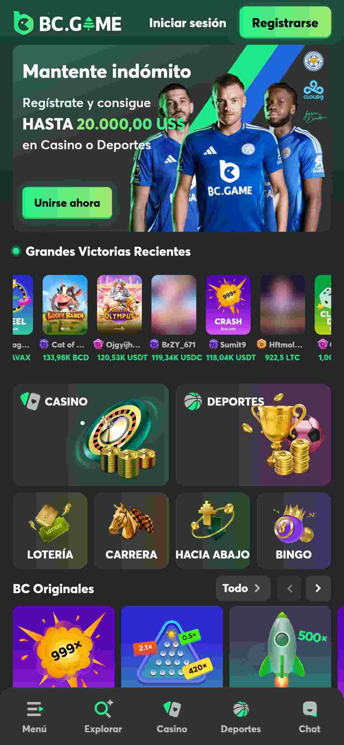 El sitio de apuestas y juegos bc game ha superado nuestras expectativas, razón por la cual aquí, en Apuestaes.net, la recomendamos con los ojos cerrados. Si le interesan las apuestas deportivas con buenas cuotas, tanto para pre partidos como en vivo, esta es la mejor opción. Eso sin agregar que puede apostar utilizando sus criptomonedas favoritas y desde una app totalmente gratis y cómoda.