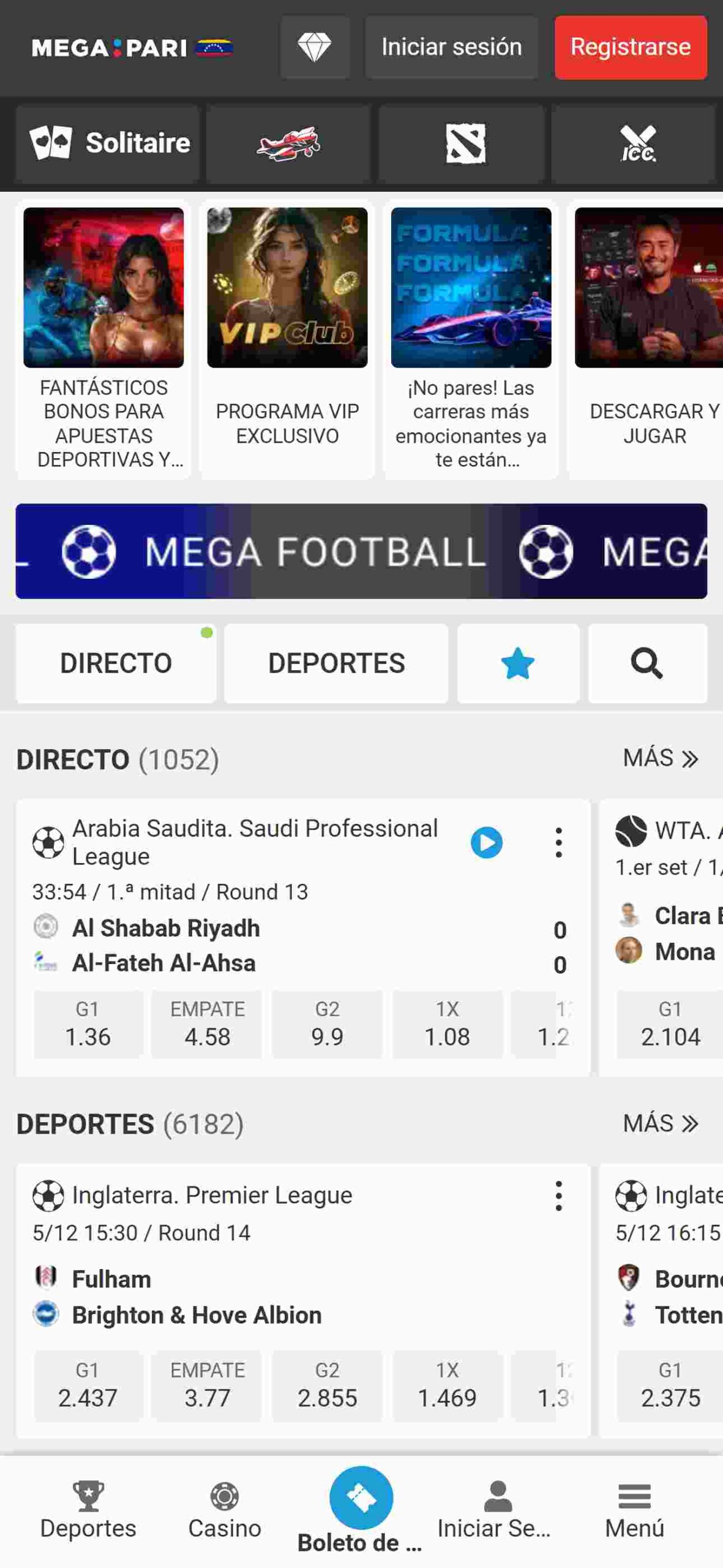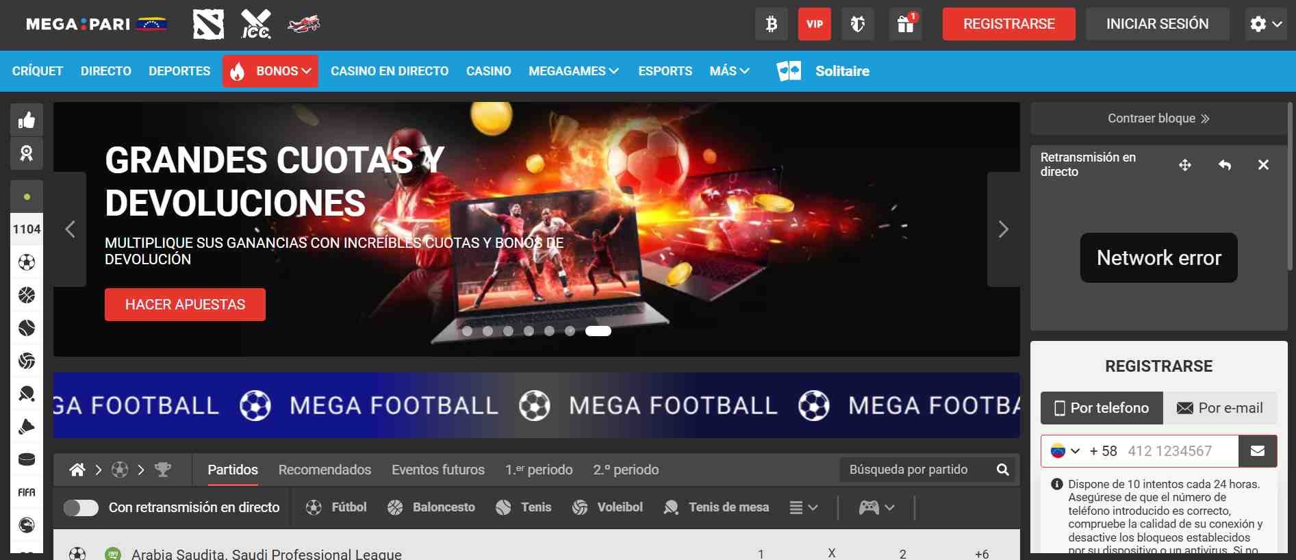 Para quienes prefieren vivir la emoción de las apuestas al momento que se desarrolla un partido, Megapari en vivo le viene como anillo al dedo. En esta sección aparte de la casa de apuestas, se incluyen funciones como retransmisiones en video, cuotas que se actualizan en tiempo real y multiDIRECTO, para seguir dos o más eventos deportivos de manera simultánea. Y por si esto no fuera poco para ofrecer, también cuenta con gráficas, estadísticas para armar mejor su estrategia de apuesta.