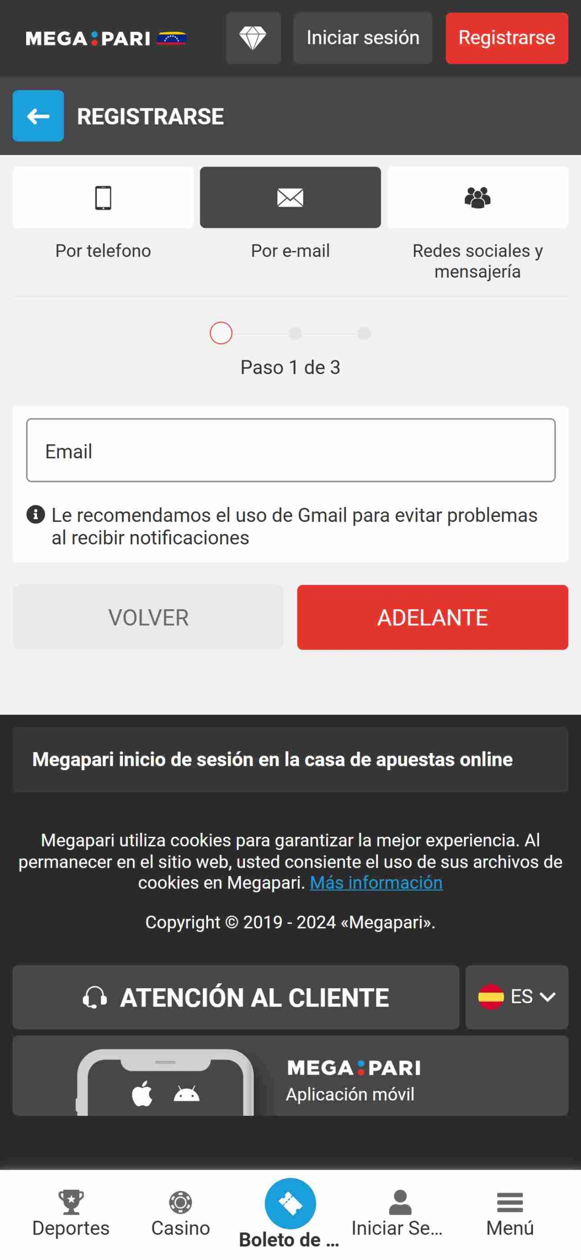 - Ingresa a Megapari Venezuela, preferiblemente desde tu navegador móvil.